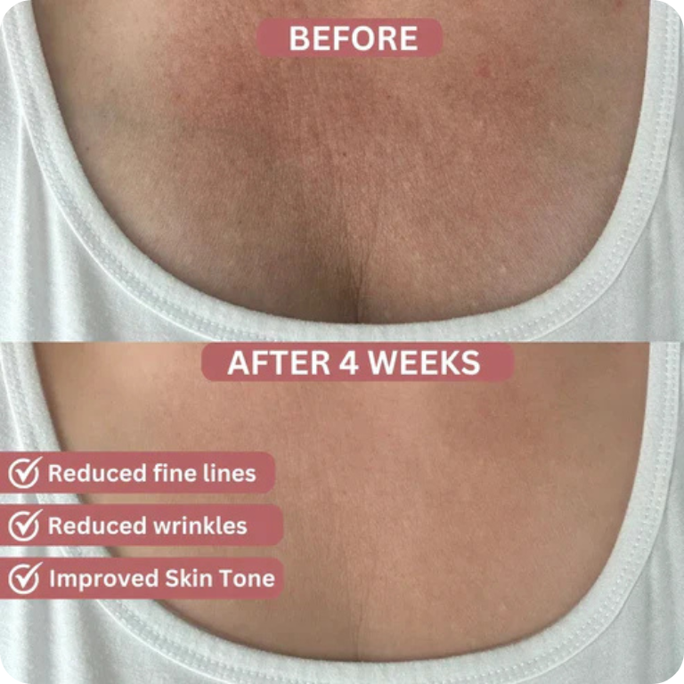 Our Bio-Collagen Chest Patches infuse skin with deep hydration from Oligo Hyaluronic Acid, leaving your chest area smoother, plumper, and visibly radiant after every use.