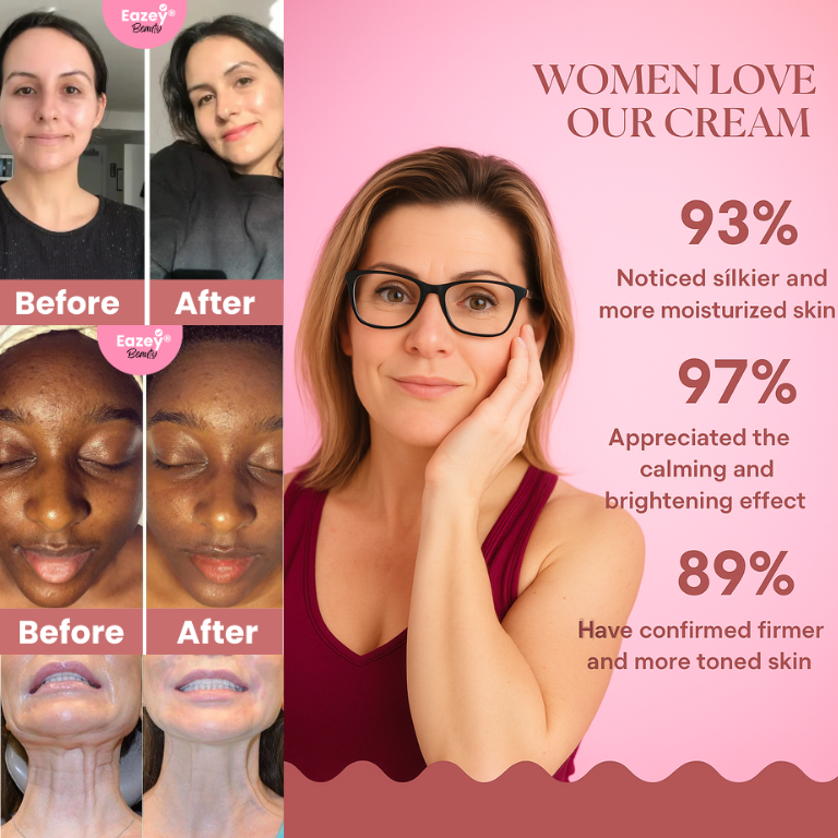 Our Bio-Collagen Cream is loved by thousands of women for one reason—it works. In just a few weeks, 93% noticed smoother, silkier skin, 97% saw brighter, more even tone, and 89% experienced firmer, lifted results.
